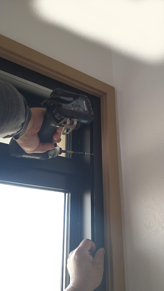 上部のビスはランマがありますので特殊工具で横から施工です^^
