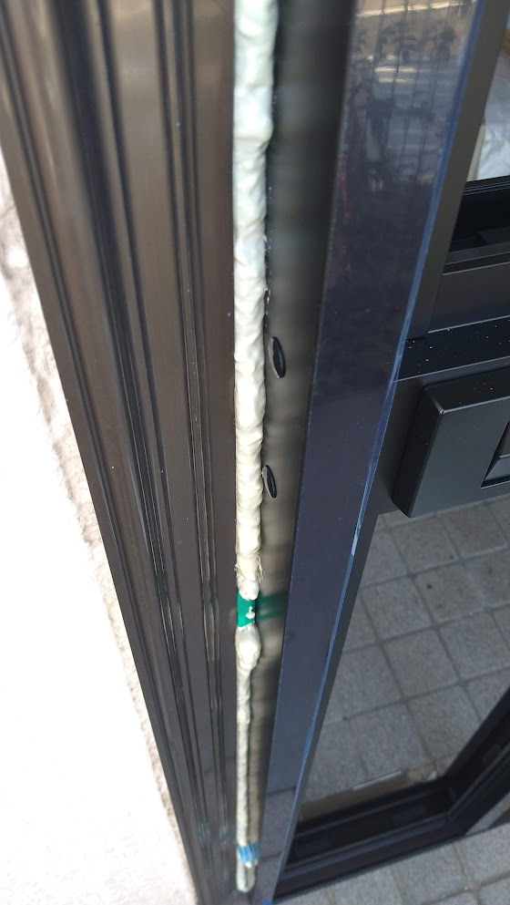 弊社では「カバー工法」を行った際、玄関ドアを取り付けた時にできてしまう新設枠と既存枠との隙間に「断熱気密施工」を施すサービスを無料で行っております。