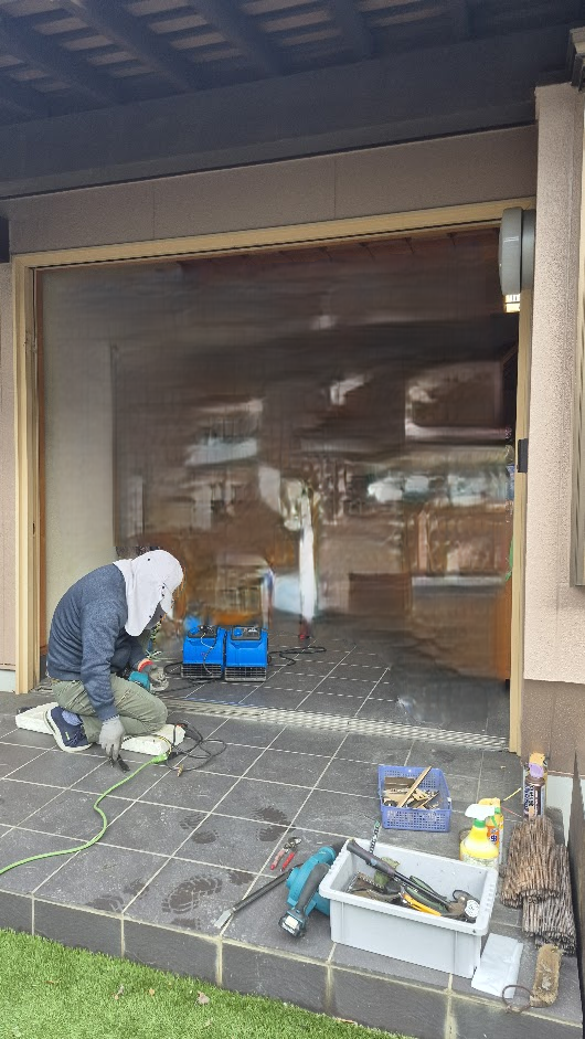 早速リフォーム開始!!既存のランマ部分や引戸本体を外していきます。