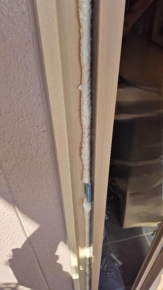 弊社では「カバー工法」を行った際、玄関ドアを取り付けた時にできてしまう新設枠と既存枠との隙間に「断熱気密施工」を施すサービスを無料で行っております。