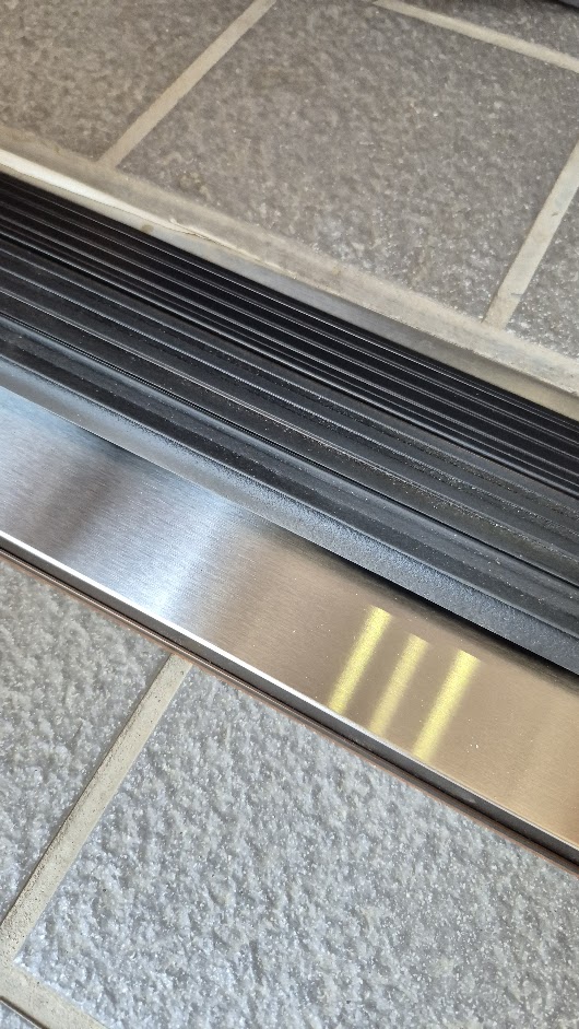 下枠の留め付けも行い、段差緩和のゴムも施工。