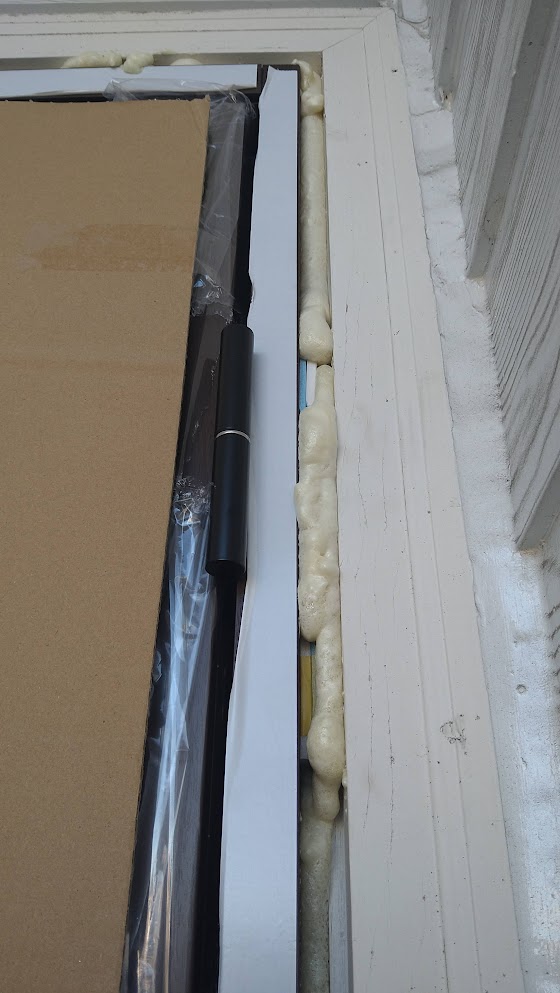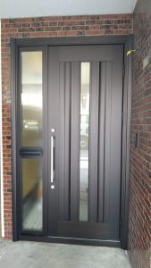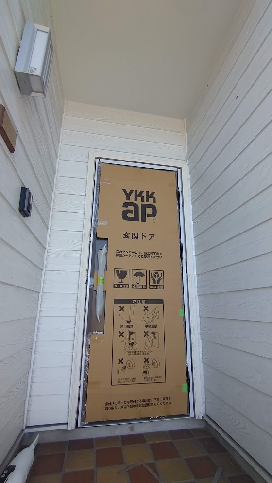 玄関ドアの方は枠の取り付けも完了し、玄関ドア本体を取り付け。