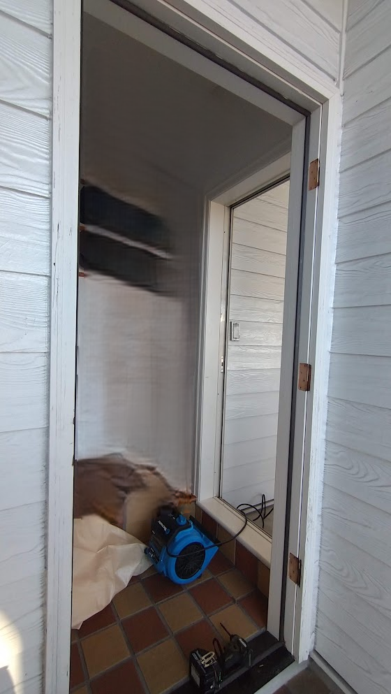 玄関部分です。輸入玄関ドアで反りが発生していました。