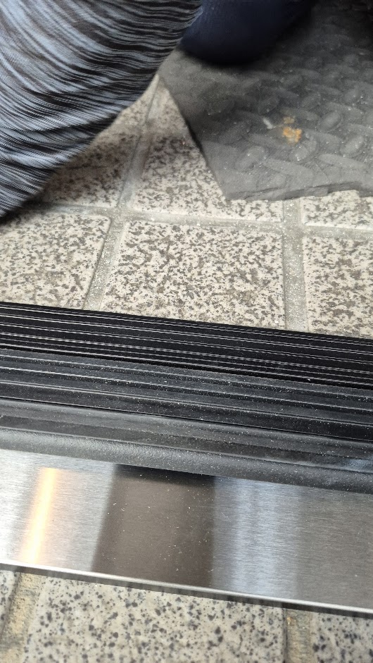 下枠を留めつけて下枠段差緩和のゴムを施工。