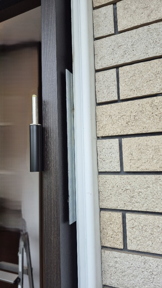 玄関ドアの親扉側には補強ブラケットも取り付け。