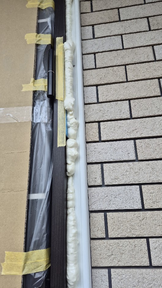弊社では「カバー工法」を行った際、玄関ドアを取り付けた時にできてしまう新設枠と既存枠との隙間に「断熱気密施工」を施すサービスを無料で行っております。